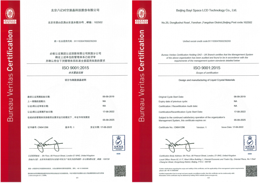 ISO9001证书-中英文版