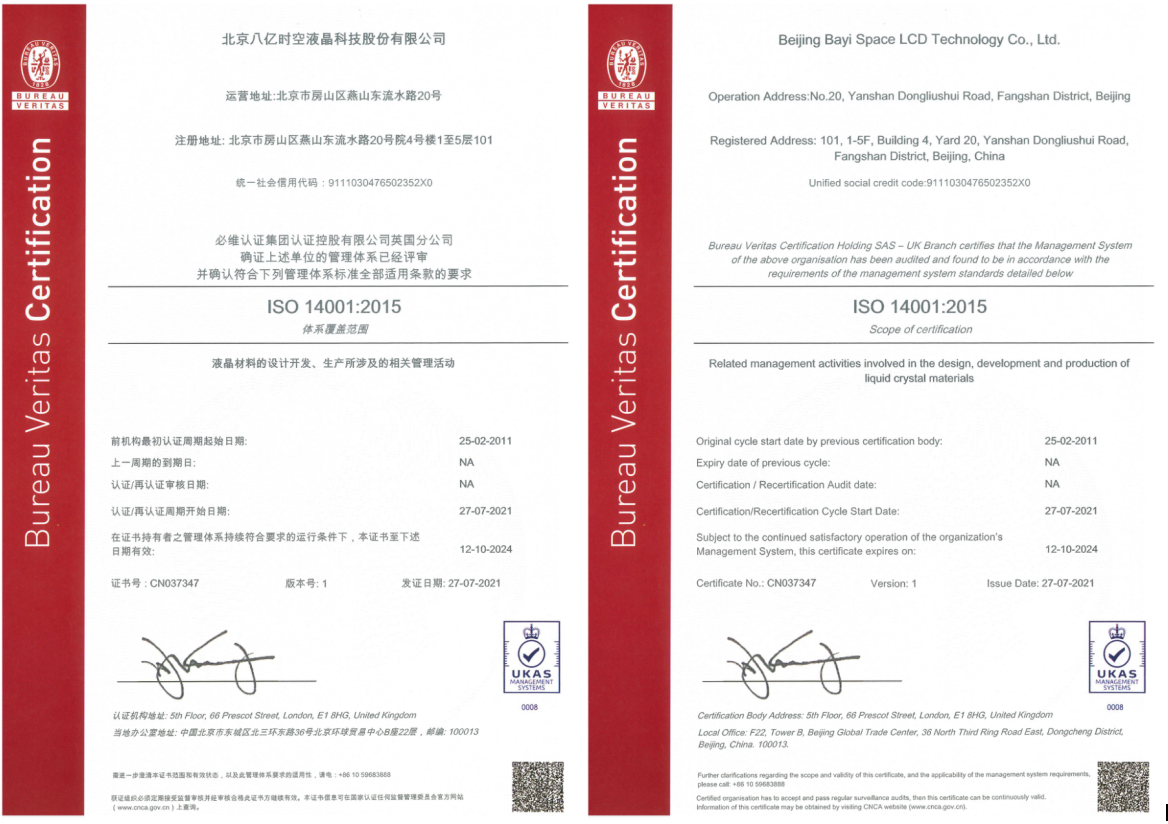 ISO14001证书-中英文版